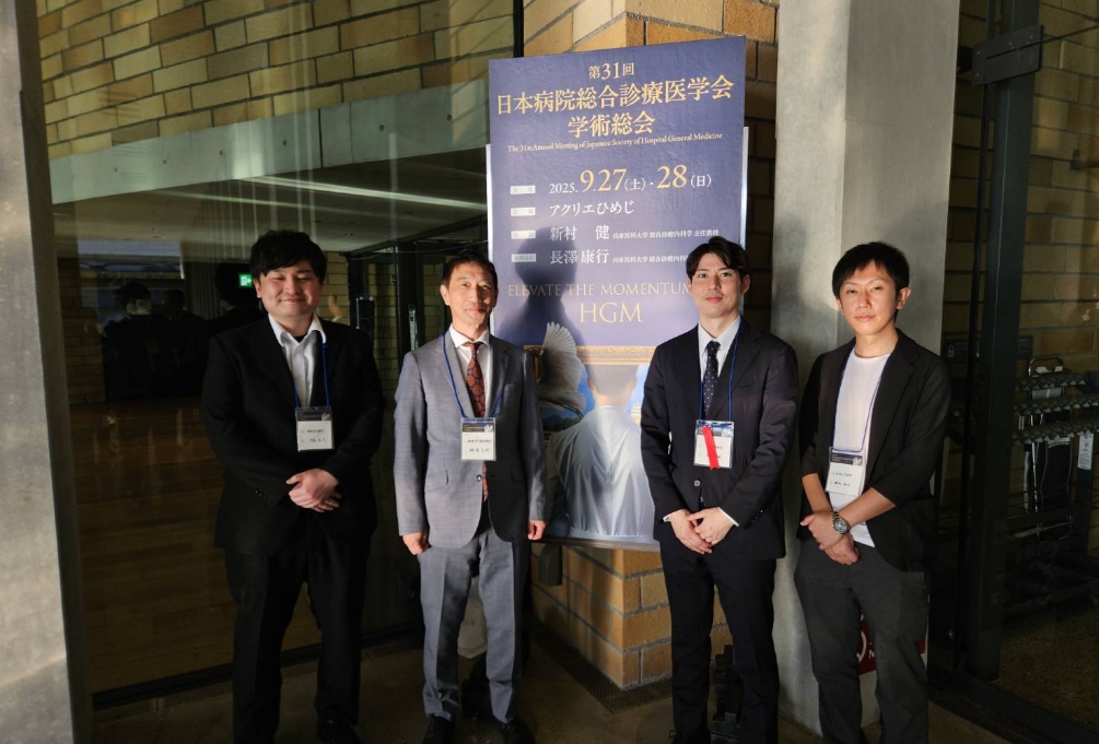 第31回日本病院総合診療医学会学術総会が、2025年9月27日(土)~28日(日)にアクリア姫路にて行われました。 当講座からは、2名の医師が以下のタイトルで発表を行いました。 鈴山 裕貴「SARS-CoV-2ワクチン接種を契機とした全身性毛細血管漏出症候群の1例」 橋本 祥嗣「皮下血種が疑われた胸囲結核の一例」