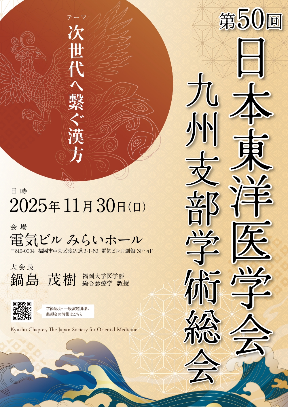 2025年11月30日(日)第50回日本東洋医学会九州支部学術総会が、電気ビルみらいホールにて行われます。 たくさんのご参加をお待ちしています。