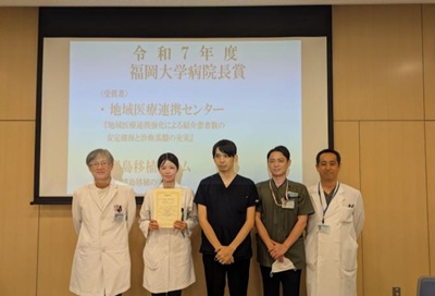 「膵島移植チーム」が令和7年度福岡大学病院 病院長賞を受賞しました。