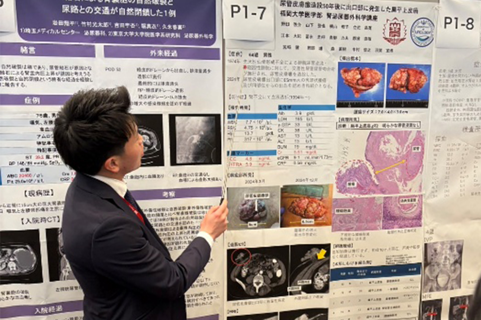 先輩医師の堂々たる発表に深く感銘を受け、特にヤングウロロジストセッションで青柳先生が優秀賞を受賞された姿は大きな刺激となりました。自身も今回初めてポスター発表に臨み、多くの気づきと課題を得られました。今後さらに研鑽を積み、いつか自分も先輩方のように胸を張って発表したいという思いが強まりました。