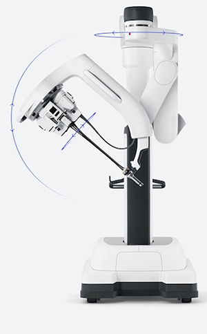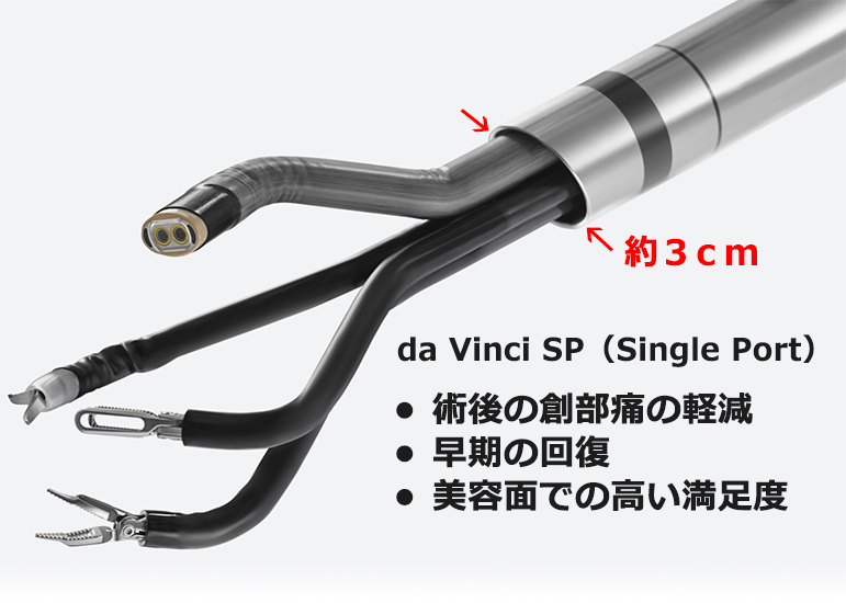 2025年11月より、当院では手術支援ロボット「da Vinci」の最新モデルである da Vinci SP(Single Port)を導入いたしました。本機器は、約 3 cm の小さな金属製の筒(ポート)から、カメラを含む4本のアームが展開され、手術を行う最新鋭のシステムです。約 4 cm程度の小さな傷口から手術が可能となるため、従来のロボット手術よりも、さらに低侵襲で身体への負担を抑えることができます。